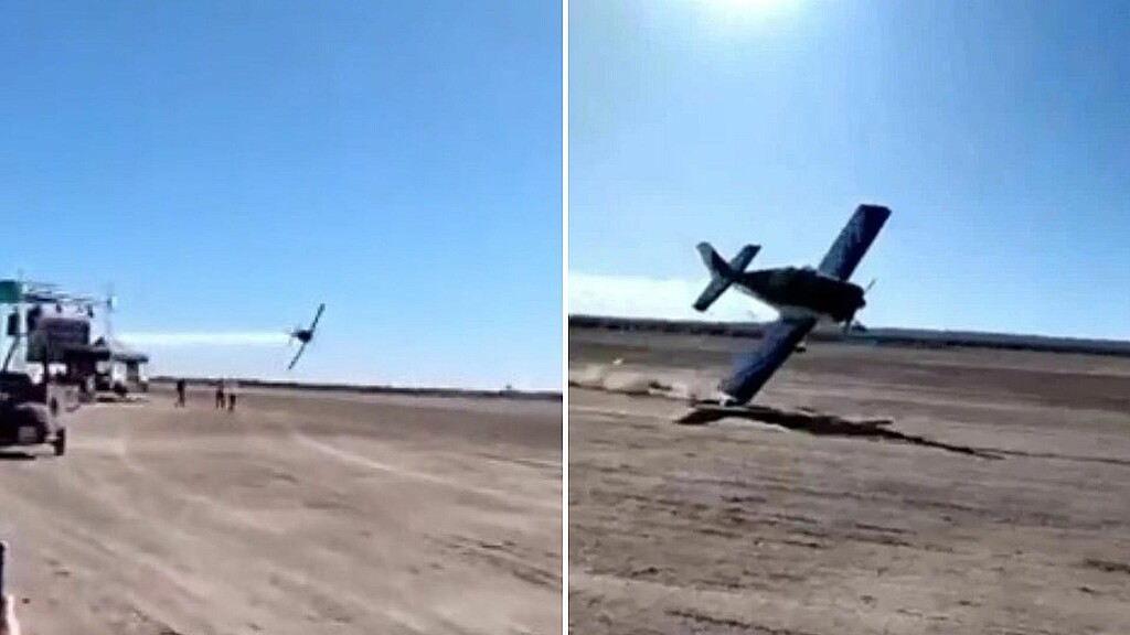 El incidente quedó registrado por la cámara de uno de los asistentes al evento. El video muestra el momento en el que el piloto del avión LV-X722 azul tuvo un error de cálculo y roza el ala derecho contra el piso.