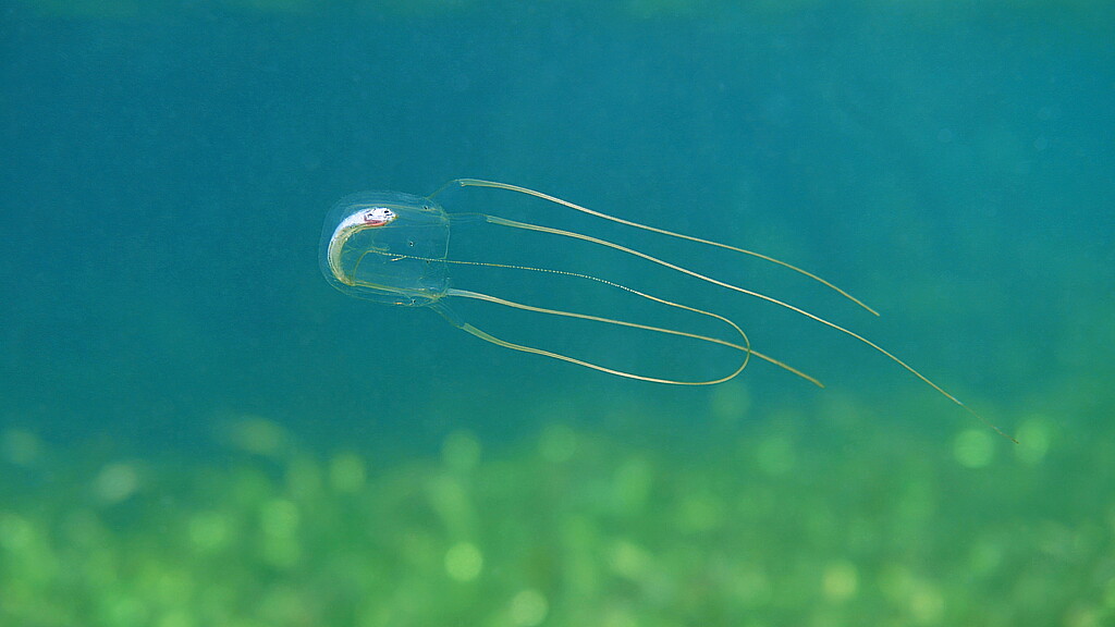 Denominada así por su cuerpo en forma de cubo, la medusa caja (o científicamente conocida como clase Cubozoa) pertenece al filo cnidario. Aunque se trata de uno de los subgrupos más pequeños de los cnidarios, en ellos se encuentran algunos de los animales marinos más venenosos conocidos en aguas tropicales. Así pues, se trata de una criatura de cuerpo transparente e incoloro con una longitud media de 1,5 centímetros, y posee tres tentáculos de hasta 10 centímetros de longitud en cada uno de sus cuatro ángulos, señaló la Universidad hongkonesa.