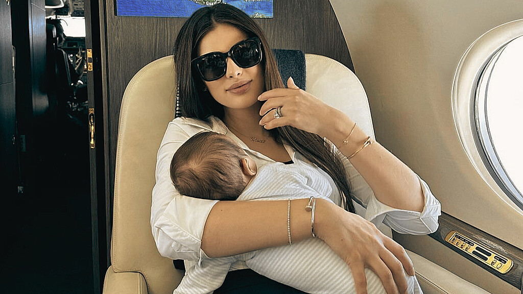 El bebé de Nadia Ferreira y Marc Anthony hace su primer vuelo en jet privado