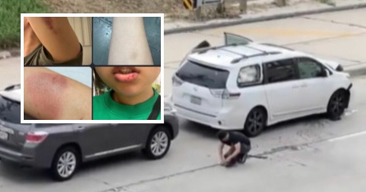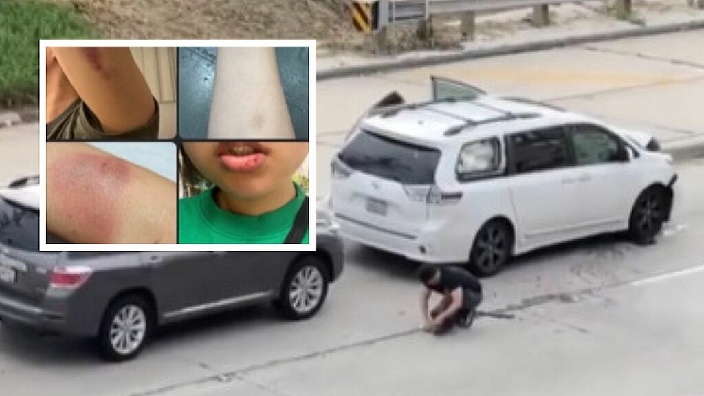 Un video que combina varios clips de diferentes conductores que captaron el incidente, muestra a la mujer gritando al conductor asiático y golpeándolo repetidamente, mientras estaban de pie junto a una SUV gris y una minivan blanca.