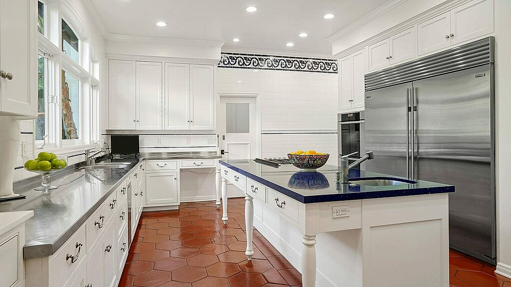 A diferencia de muchas casas de la época, esta fue diseñada con techos altos, lo que permitió una abundante luz natural. Las ventanas arqueadas, los pisos de madera y los techos artesonados tallados a mano ofrecen el glamour insustituible del Viejo Hollywood.