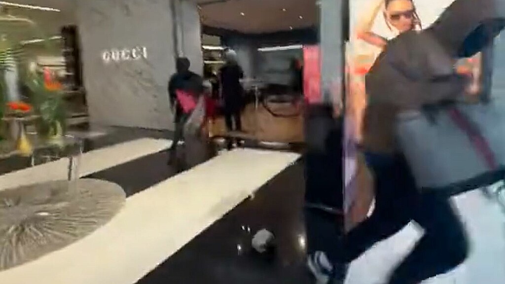 En el video se puede ver a 9 hombres con sudaderas con capucha que salen corriendo de la tienda Gucci cargados de bolsas y maletas ante la mirada de decenas de personas, que se limitan a grabarlos con sus teléfonos.