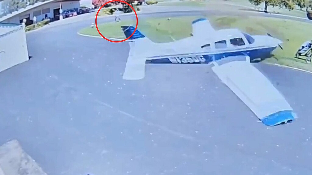Un video que circula en redes sociales muestra el momento en que la avioneta realiza un aterrizaje de emergencia en el campo de golf y casi impacta a una persona que se encontraba de pie en una zona cubierta de hierba.