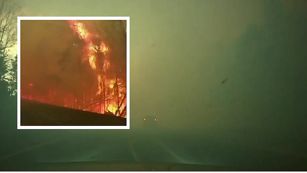 Las fotos compartidas en las redes sociales muestran una enorme nube de humo cubriendo la ciudad; además, en los videos se puede ver a varias personas conduciendo a través del fuego sin poder visualizar lo que se aproxima.
