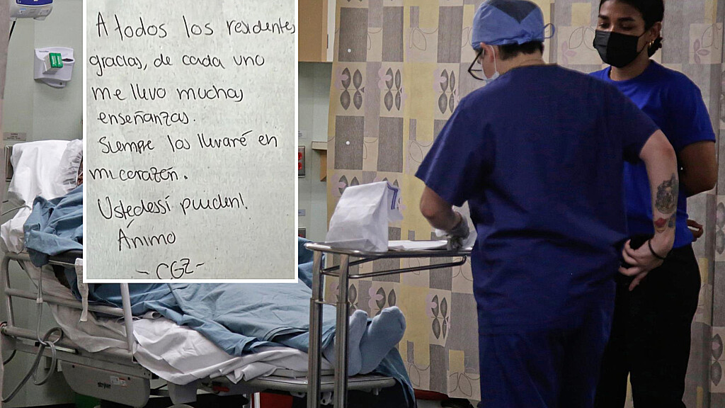 “A todos los residentes, gracias. De cada uno me llevo muchas enseñanzas. Siempre los llevaré en mi corazón. Ustedes pueden. Ánimo. CGZ”, dice una nota dejada por la joven médica.