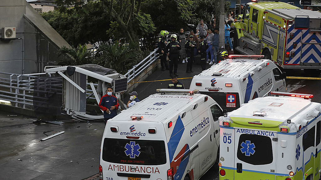 Decenas de policías y bomberos acudieron al lugar de los hechos tras el desplome de una cabina de teleférico en Medellín, Colombia