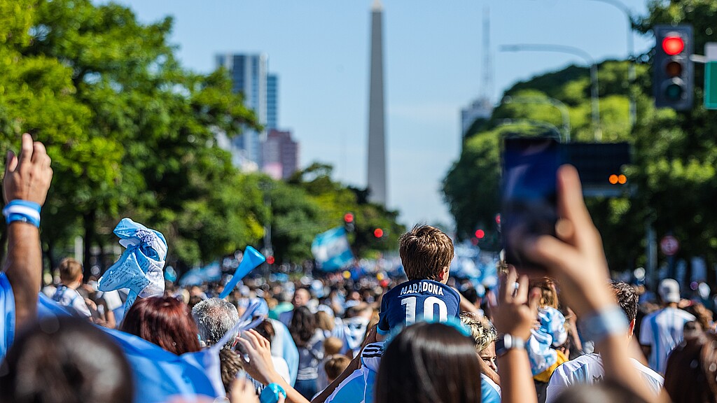 Tuesday morning the players left AFA headquarters for Obelisk, a famous Buenos Aires landmark surrounded by thousands of celebrating Argentines waving flags to welcome the champions home. The Obelisk became a landmark location during the World Cup championship for fans to congregate and cheer.