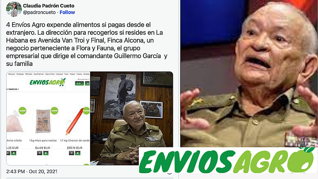 According to an investigation by journalist Claudia Padron, E-commerce sites, such as Envios Agro, dispense products that can only be picked up at Finca Alcona, the farm of General Garcia Frias.