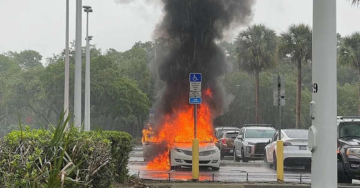 An hour later, Moore returned to her car only to find it engulfed in flames.