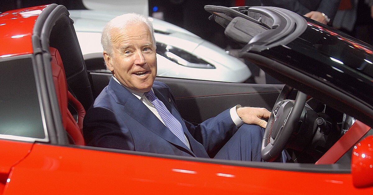 Decked out in a dangerous pair of khakis, a blue Ralph Lauren polo and dark aviator sunglasses, the 46th president drove the 350-horsepower, eight cylinder powered, four-speed manual transmission Corvette in a matchup against Michael Powell’s more powerful automatic 2015 Stingray.