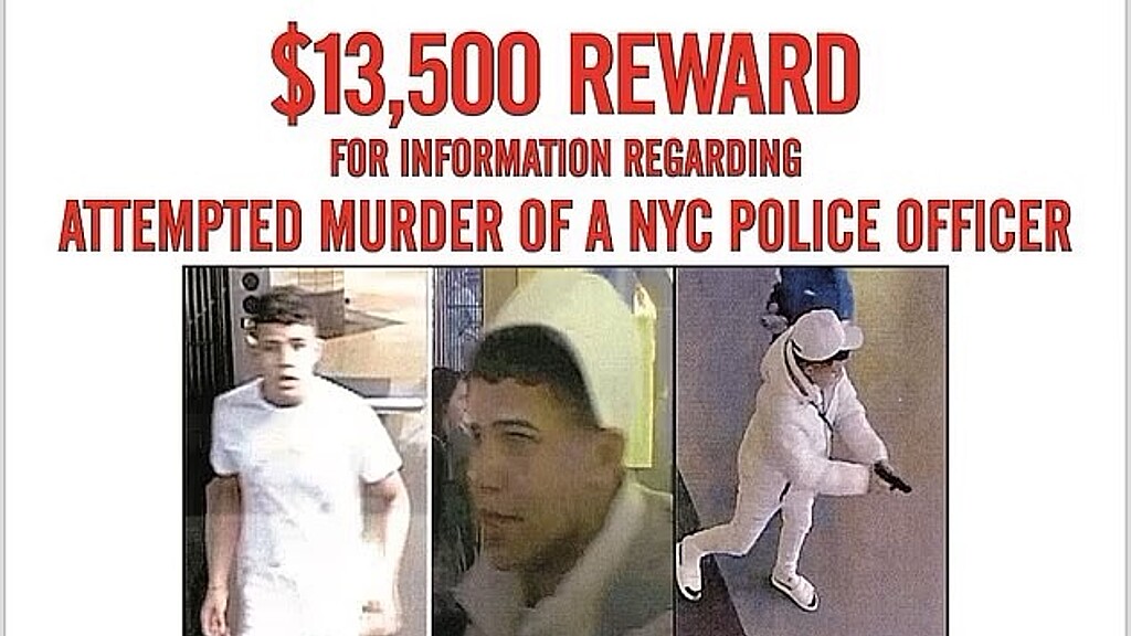 Police scoured the city searching for the young man after posting a wanted poster for him with security footage, offering a $13,500 reward “for information regarding [the] attempted murder of a NYC police officer.”