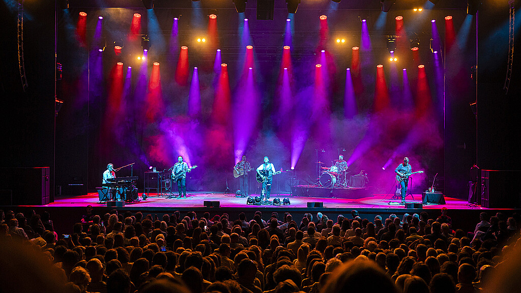 El vocalista, que se ha dirigido en varias ocasiones al público para presentar algún tema y agradecerle su fidelidad, ha dicho que estaban muy contentos de estar en Cap Roig, “donde hacía años" querían tocar.