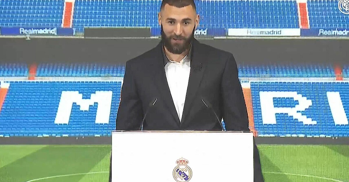 En su breve alocución, Benzema confesó haber cumplido sus sueños de infancia y repitió la frase de su presentación hace catorce años cuando aún no hablaba castellano. "Lo más importante para mí es lo que he ganado en el Real Madrid como un niño. Como dije el primer día: uno, dos, tres, ¡Hala Madrid!".