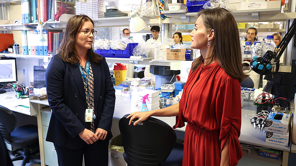 Durante la visita diez investigadores españoles mantuvieron un encuentro privado con la reina Letizia para mostrarle su día a día en IFOM y comentar las sinergias que pueden extraer del centro italiano con el objetivo de aplicar dicha experiencia en España.