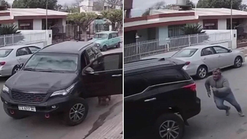 Las imágenes de la cámara de seguridad muestran al propietario de la casa sacando su camioneta, mientras sus perros lo acompañaban. Al momento de ingresarlos nuevamente a la casa, Apolo subió al vehículo, apretó el acelerador y se bajó asustado cuando la camioneta comenzó a moverse.