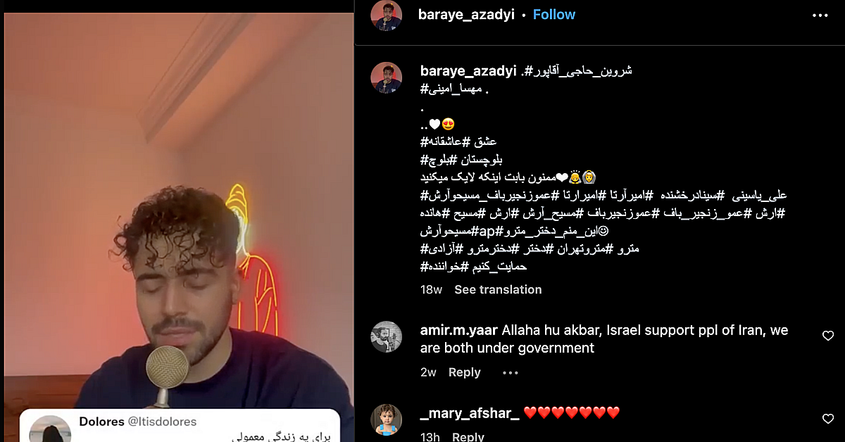 A pesar de la detención de su autor, del borrado de la canción de Instagram y de la fuerte censura de internet en Irán, “Baraye” ha resonado en redes sociales y en los densos atascos de la capital iraní, sonando a todo volumen desde los coches.