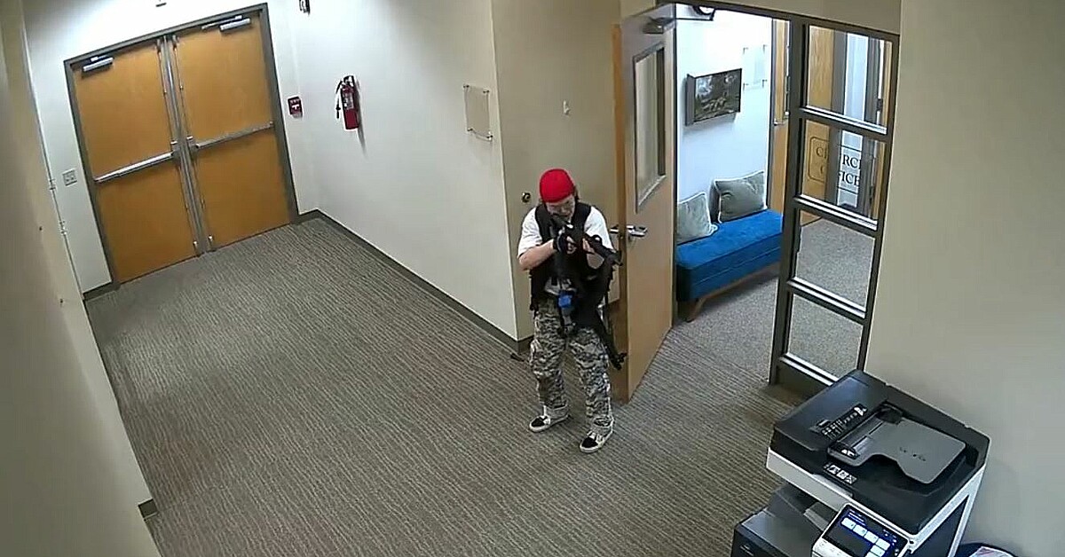 En un video de vigilancia se ve a la atacante que se identifica como transgénero de nombre Audrey Elizabeth Hale, con un fusil en el lugar de la masacre.