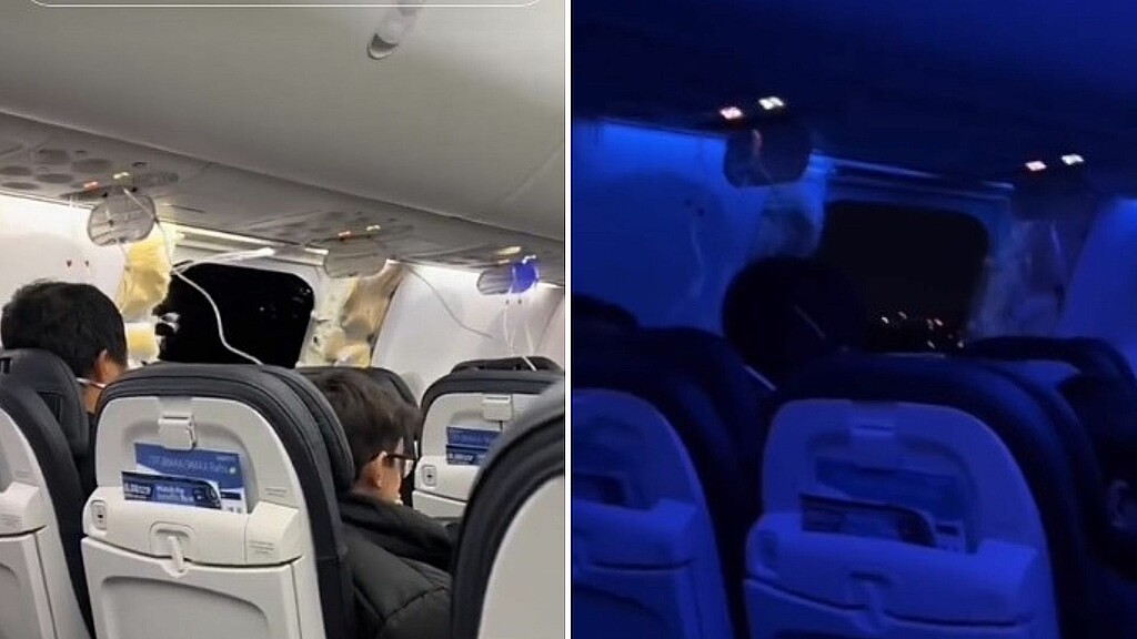 Las imágenes que se compartieron en las redes sociales muestran un enorme agujero en el costado del avión y a los pasajeros usando máscaras de oxígeno antes de regresar a Portland.