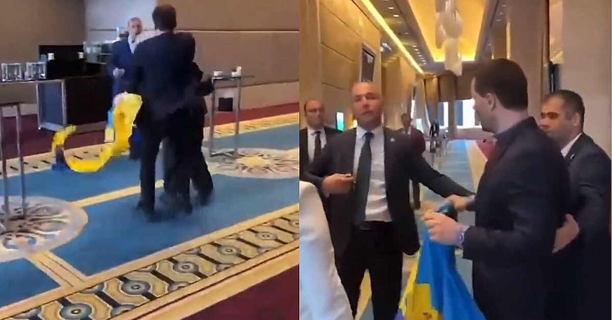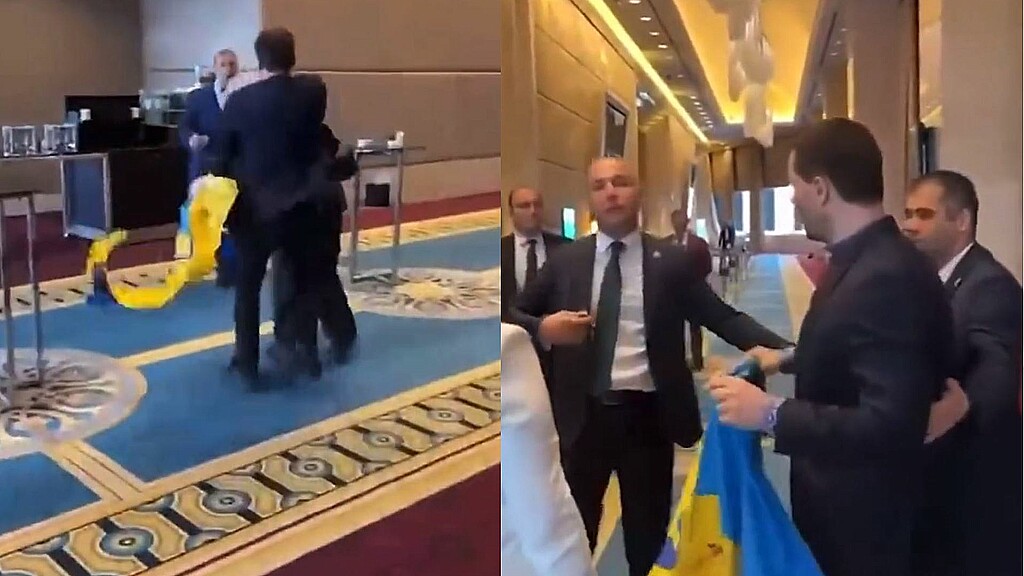 Un delegado ruso le arrebata bandera a un diputado ucraniano en una cumbre en Turquía y estalló una pelea