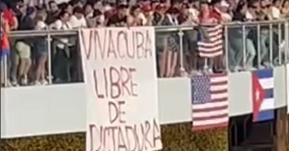 Pero a pesar de las presiones de los elementos de seguridad, no pudieron evitar que los aficionados cubanos arremetieran contra la dictadura con carteles y gritos a viva voz que reclamaban libertad.