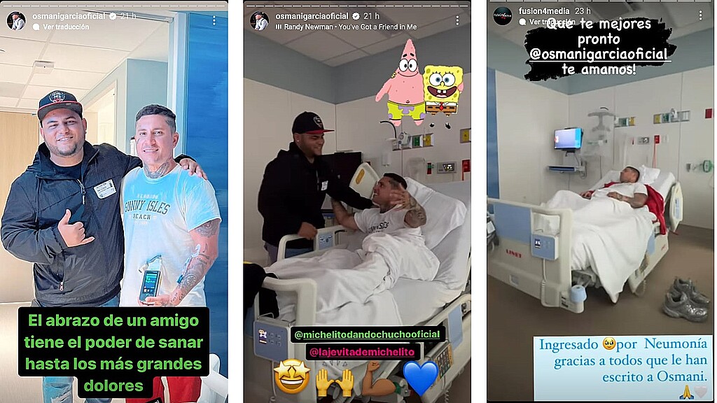 Fue Osmani quien compartió imágenes en su perfil de Instagram de una habitación en un centro de salud, en las que se ve recibiendo tratamiento médico. También subió algunas imágenes de visitas que ha recibido durante su internación.