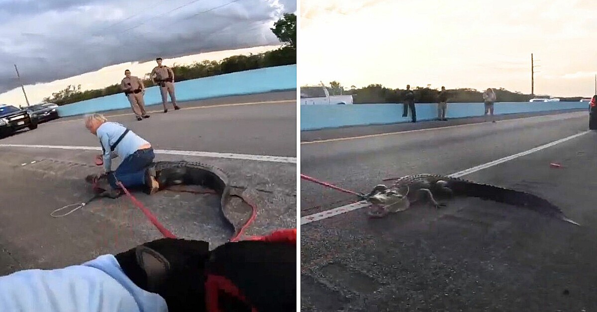 VIDEO: Capturan a enorme caimán que paralizó el tráfico cerca de Key Largo