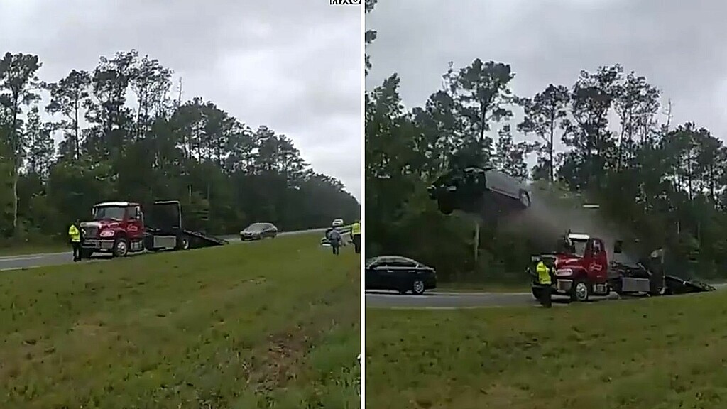 VIDEO: Conductor de Florida sale volando tras subirse a toda velocidad en la rampa de una grúa