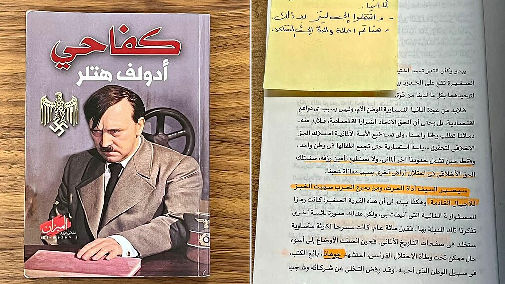 La IDF compartió en X, anteriormente Twitter: "Nunca más es AHORA". "Las fuerzas de la IDF descubrieron una copia del infame libro de Hitler 'Mein Kampf', traducido al árabe, en la habitación de un niño utilizada como base terrorista por Hamas en Gaza. El libro fue encontrado entre las pertenencias personales de uno de los terroristas, con anotaciones y resaltados. Hamas abraza la ideología de Hitler, el responsable de la aniquilación del pueblo judío". Una foto del libro muestra cómo se resaltan pasajes y se hacen notas adicionales en árabe.
