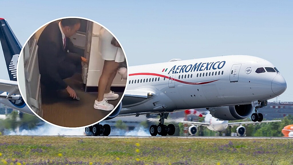 ¡INDIGNANTE! Momento en que sobrecargo de Aeroméxico graba debajo de la falda de pasajera