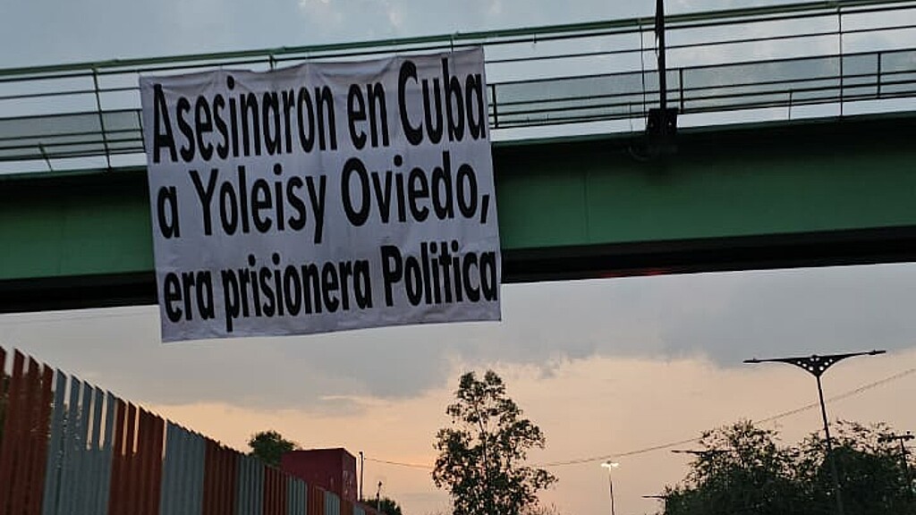 Las mantas que se colgaron en populosas avenidas de la capital mexicana rezan: "No más presos políticos en Cuba", "Justicia para Yoleisy Oviedo en Cuba", "Que se acabe la dictadura comunista en Cuba", entre otros.