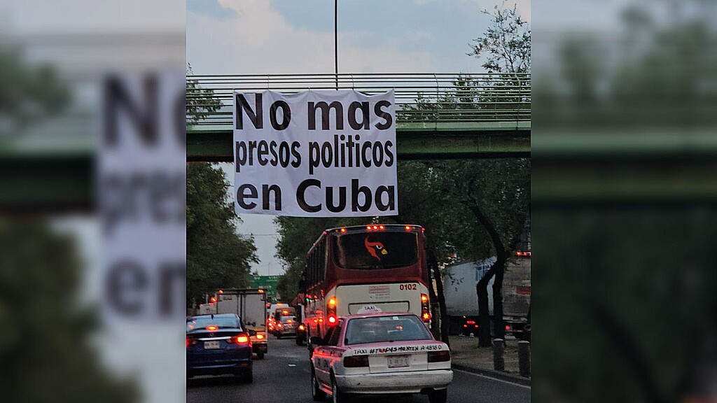 Las mantas que se colgaron en populosas avenidas de la capital mexicana rezan: "No más presos políticos en Cuba", "Justicia para Yoleisy Oviedo en Cuba", "Que se acabe la dictadura comunista en Cuba", entre otros