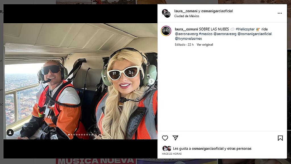 “México en helicóptero. Mi reina merecía ver la ciudad de esta manera especial”, escribió el artista cubano junto a un video del paseo sobre la capital mexicana. En el vuelo donde recorren buena parte del centro azteca, el famoso y su esposa se dejan ver muy felices y sorprendidos. También García usó el post para agradecer a la empresa que había hecho posible esta aventura.