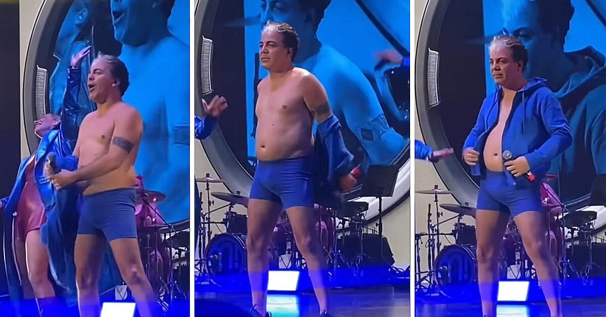 En esta oportunidad, dejó sin palabras a los cantantes de Miranda, que de manera inesperada fueron testigos de un hecho que rápidamente se viralizó en las redes sociales. Todo sucedió en el marco de la invitación del artista a participar del show, y al cierre del tema musical, se quitó la ropa, quedando prácticamente en paños menores.