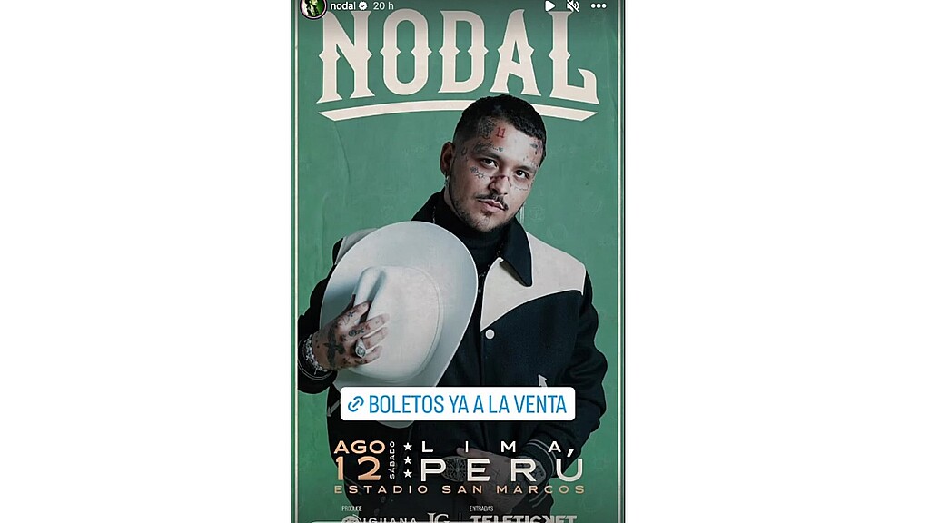 Fue en la noche de este lunes cuando Nodal compartió a través de sus historias en Instagram la información de su próxima presentación en Lima, Perú, adonde llegará con su show Foraji2 Tour.