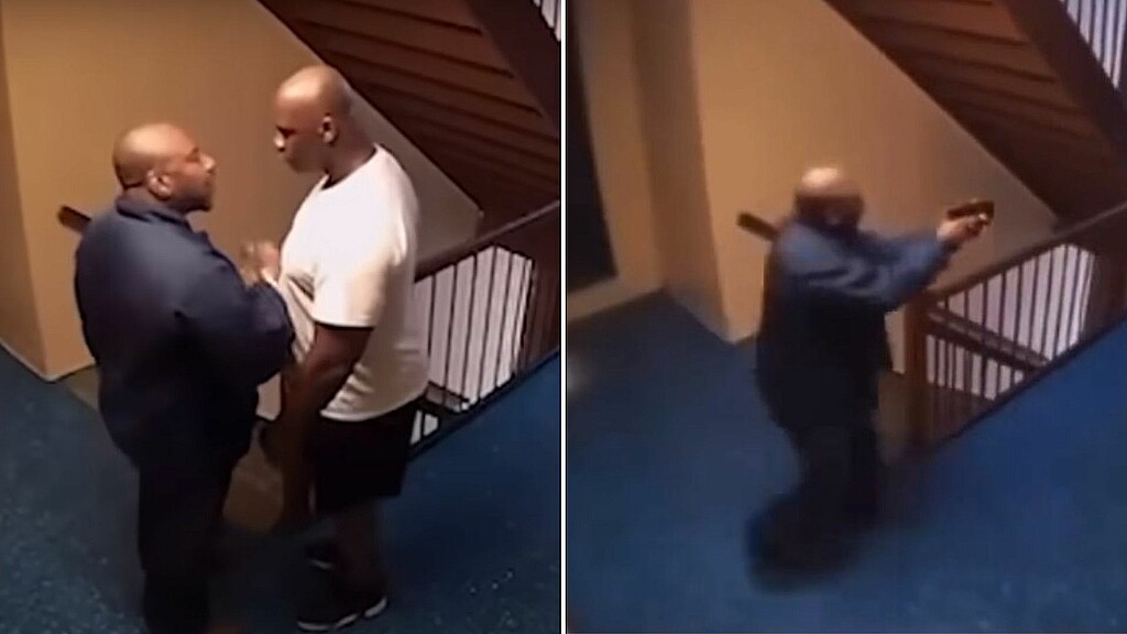 Las imágenes obtenidas por The Post comienzan con un hombre vestido de negro discutiendo afuera del apartamento de sus vecinos.