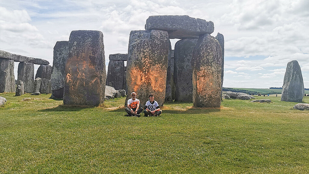 Dos activistas del grupo ecologista Just Stop Oil fueron detenidos este miércoles después de rociar con pintura naranja el famoso monumento megalítico de Stonehenge en Wiltshire, en el suroeste de Inglaterra. El incidente, que ha causado gran revuelo, quedó grabado por otros visitantes al lugar y los videos circulan en internet.