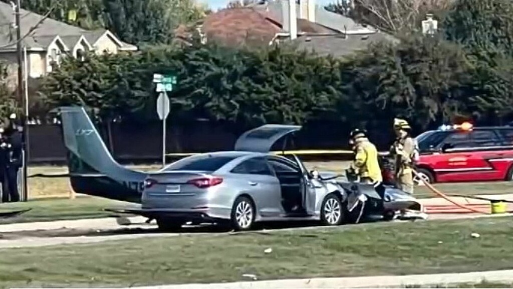 🇺🇲 | ÚLTIMA HORA: Una pequeña avioneta choca contra un automóvil mientras realiza un aterrizaje de emergencia en McKinney.