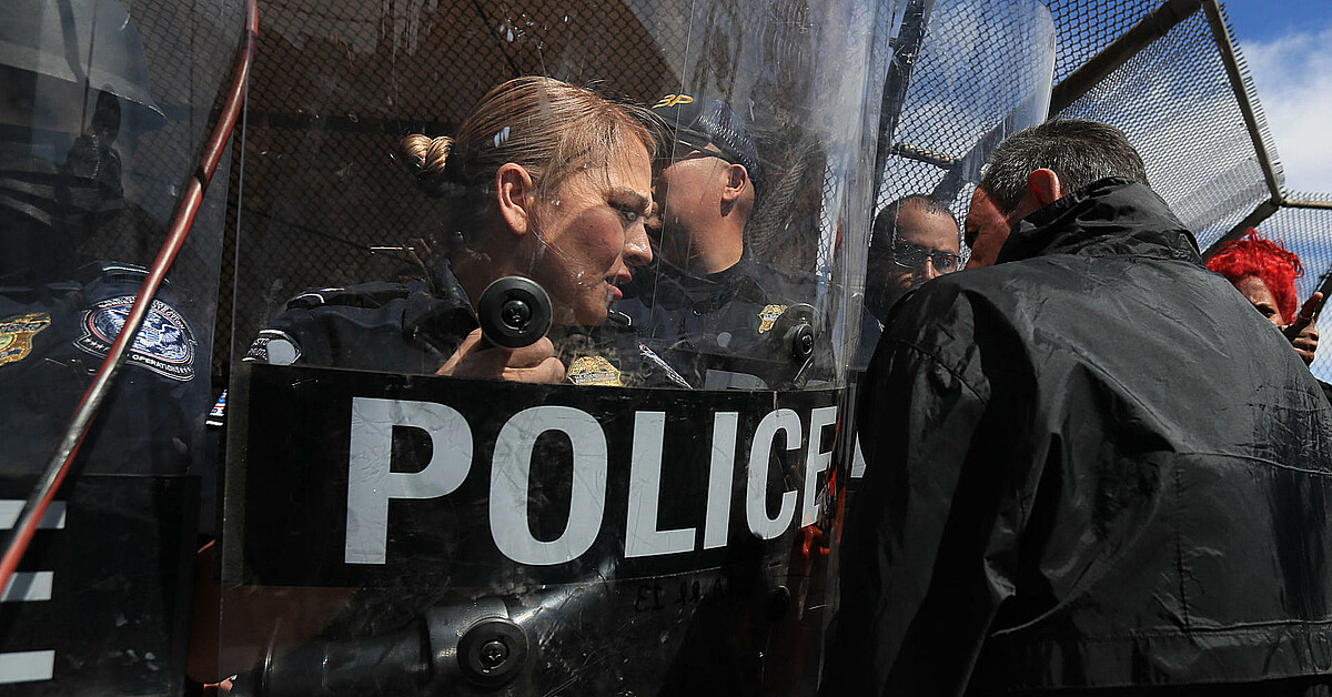 Los uniformados, preparados con equipo antidisturbios, no permitieron que los migrantes rebasaran el perímetro que habían establecido para evitar que llegaran a Estados Unidos.