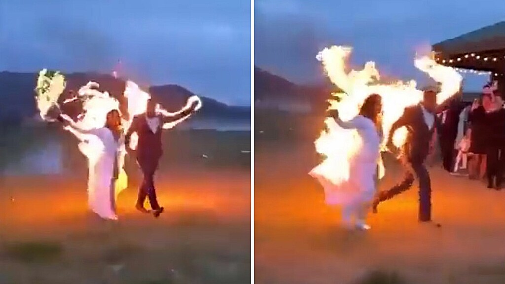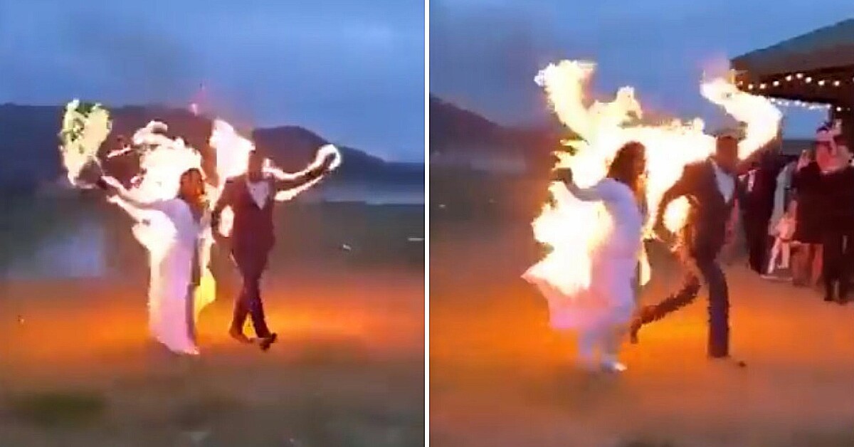 ¡UNA BODA ARDIENTE! Novios se prenden fuego durante la entrada a su ceremonia