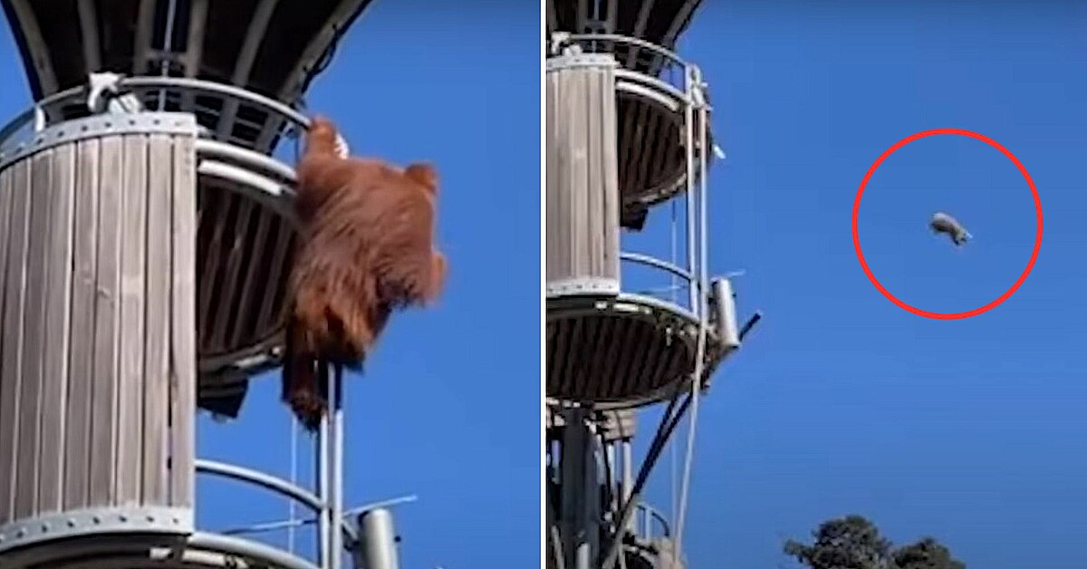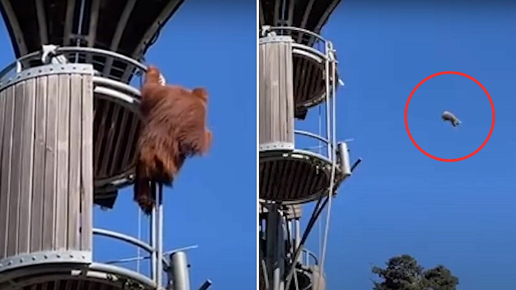 Un video que se volvió viral en redes sociales muestra al marsupial volando por los aires desde el punto mas alto de la exhibición del orangután.